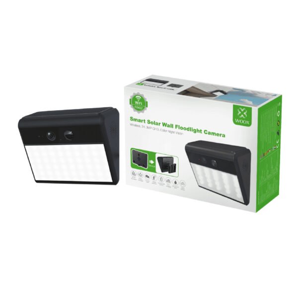 De R8422 Smart Solar Wall Floodlight Camera biedt slimme beveiliging voor buitenruimtes. De combinatie van 2K UHD‑camera, krachtige floodlight en geïntegreerd solar‑paneel maakt het een volledig draadloze oplossing voor toezicht en verlichting.