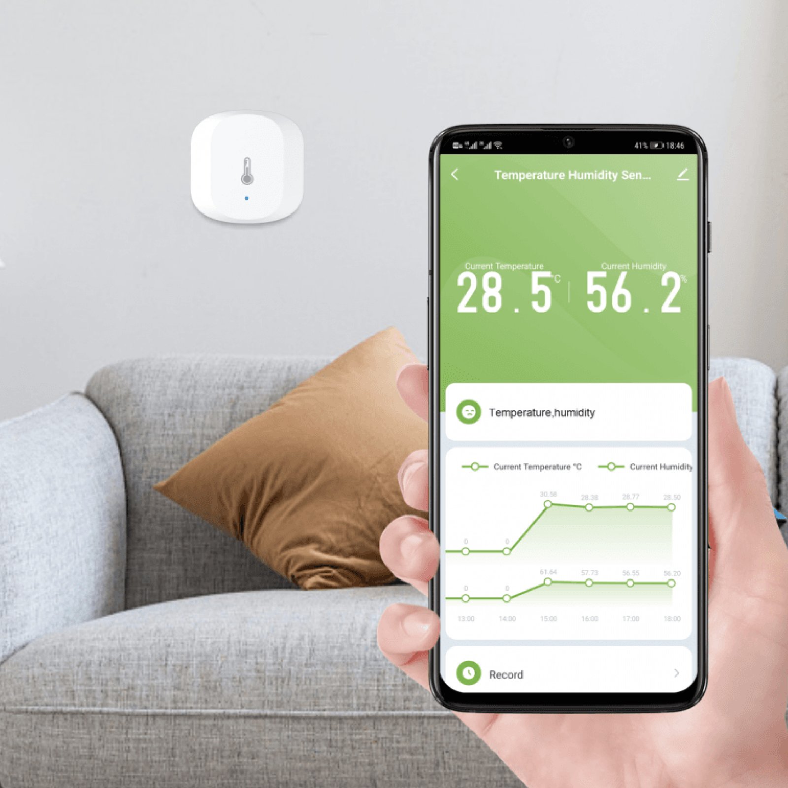 Of het nu gaat om een vochtige kelder, een warme zolder of een werkruimte die je onder controle wilt houden: deze sensor biedt betrouwbare data. Dankzij een nauwkeurigheid van ongeveer ±0,3 °C voor temperatuur en ±3 % voor luchtvochtigheid ben je goed geïnformeerd.