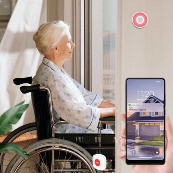 De Woox R7052 Smart SOS Button is een draadloze noodknop die je overal in huis kunt plaatsen. Bij activatie stuurt de knop meldingen naar je smartphone en activeert hij een alarm, ideaal voor noodgevallen of als paniekknop.