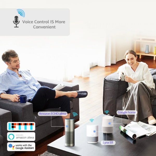 Via de Woox Home-app kun je aangesloten apparaten op afstand in- of uitschakelen, schema’s instellen en routines automatiseren. Liever handsfree? Gebruik spraakcommando’s via Amazon Alexa of Google Assistant voor directe bediening.